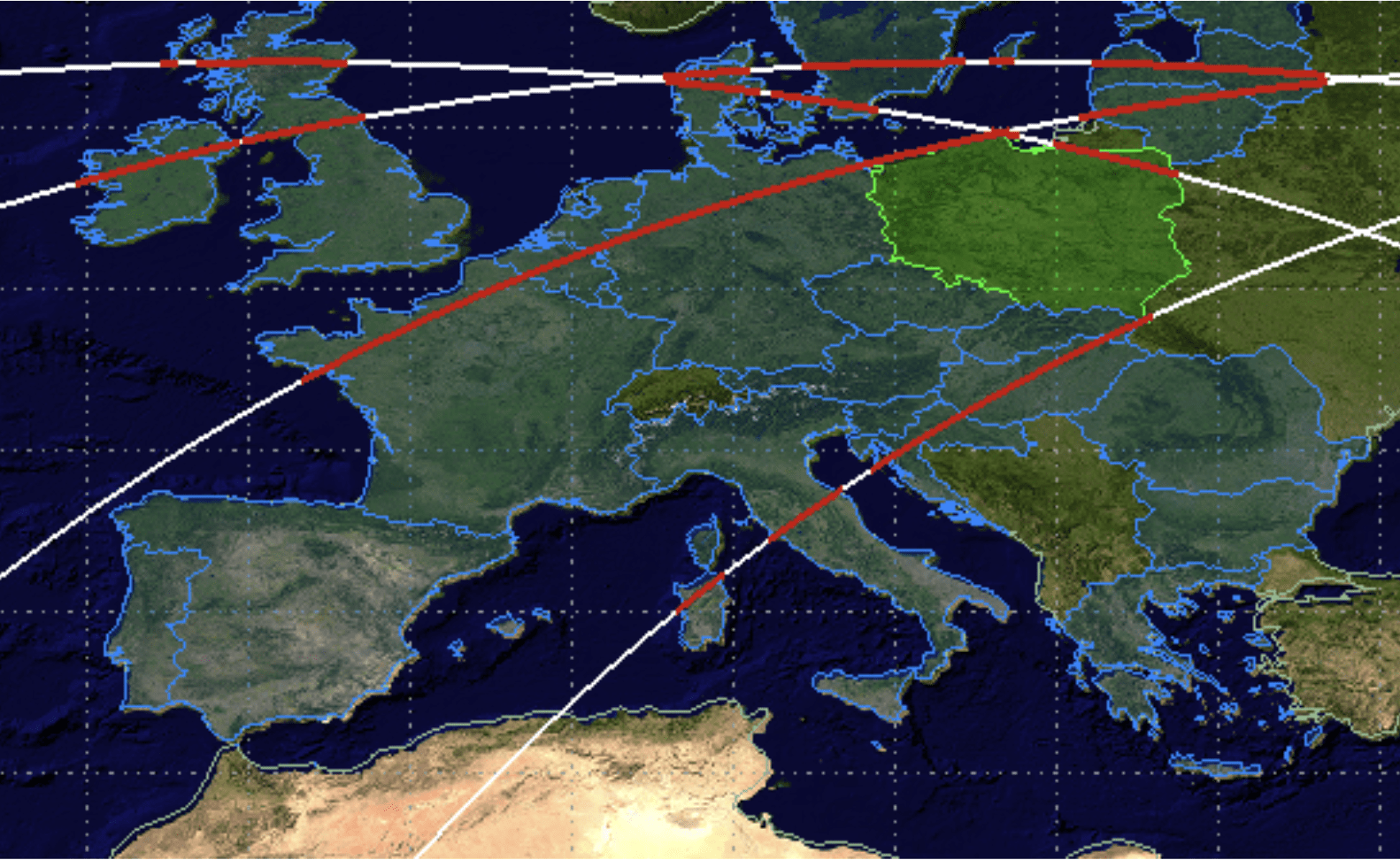 Jednak analiza załączonych map trajektorii orbitalnej rzuca nieco inne światło na sytuację. Jedna z białych linii, wyznaczających trasę przelotu, przecina południowo-wschodnią część kraju.