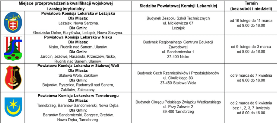 Komisja dla przynależących do WCR w Rzeszowie odbywać się będzie od 23 lutego do 24 kwietnia od godz. 8:00 – 16:00 przy ul. Hetmańskiej 21.
