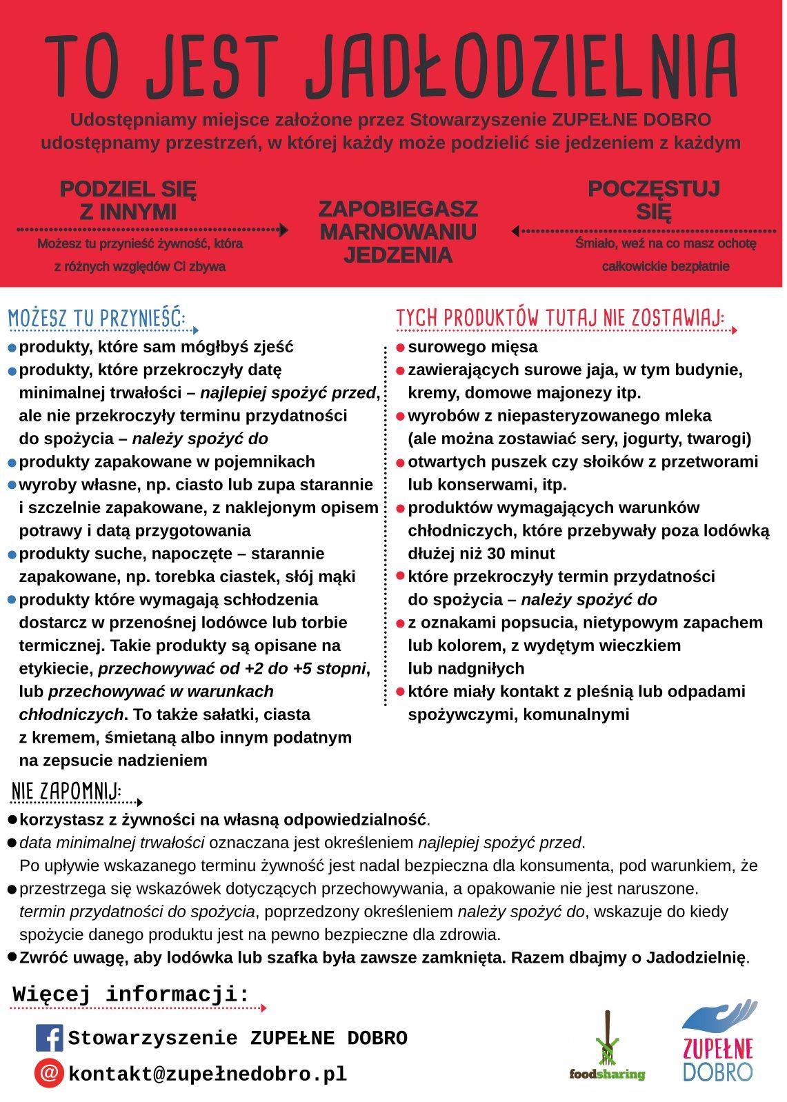 – Jadłodzielnia to miejsce dla każdego. Nie sprawdzamy kim jesteś ani ile zarabiasz. Możesz przynieść jedzenie, możesz je zabrać, a możesz zrobić jedno i drugie – wyjaśnia Stowarzyszenie Zupełne Dobro.