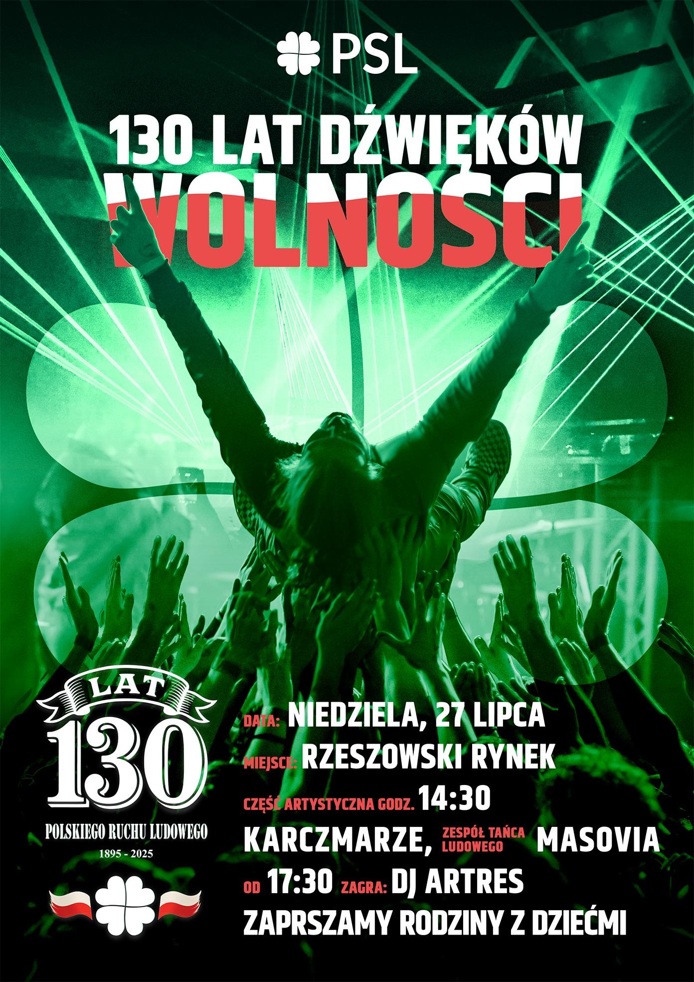 Dodatkowo, w niedzielę na rzeszowskim Rynku PSL Podkarpackie organizuje imprezę. Część artystyczna rozpocznie się już o godz. 14:30, kiedy Karczmarze oraz Zespół Tańca Ludowego Masovia rozgrzeją scenę w folkowym stylu. Wieczór zakończy się nowoczesnymi brzmieniami pod przewodnictwem DJ-a Artresa, który wejdzie na scenę o 17:30.