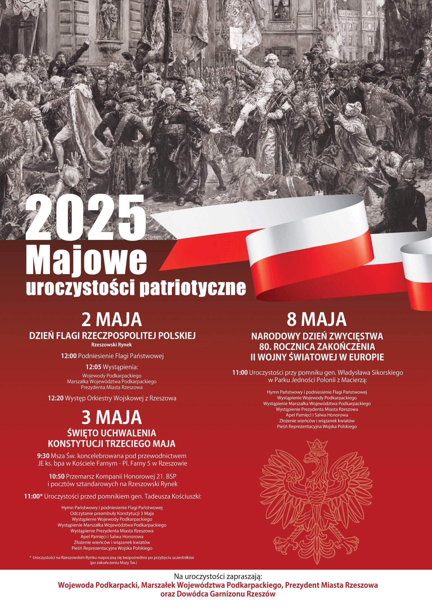 2 maja na rzeszowskim Rynku odbędą się uroczystości, które rozpocznie o godz. 12:00 uroczyste podniesienie flagi państwowej. Następnie głos zabiorą m.in. prezydent Konrad Fijołek, wojewoda Teresa Kubas-Hul, oraz marszałek Władysław Ortyl.