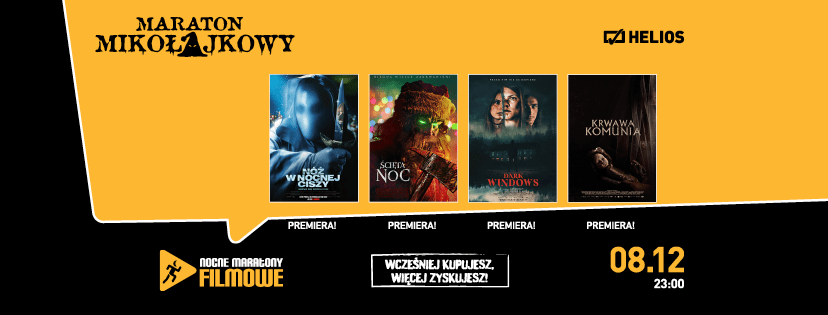 – Taka dawka strachu jeszcze długo po powrocie do domu nie pozwoli Wam zasnąć – zapowiada Helios. Maraton Mikołajkowy odbędzie się 8 grudnia (piątek), start o 23:00.
