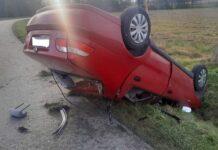 Zwierzę wbiegło na jezdnię. 19-latek tracił panowanie nad fiatem i dachował