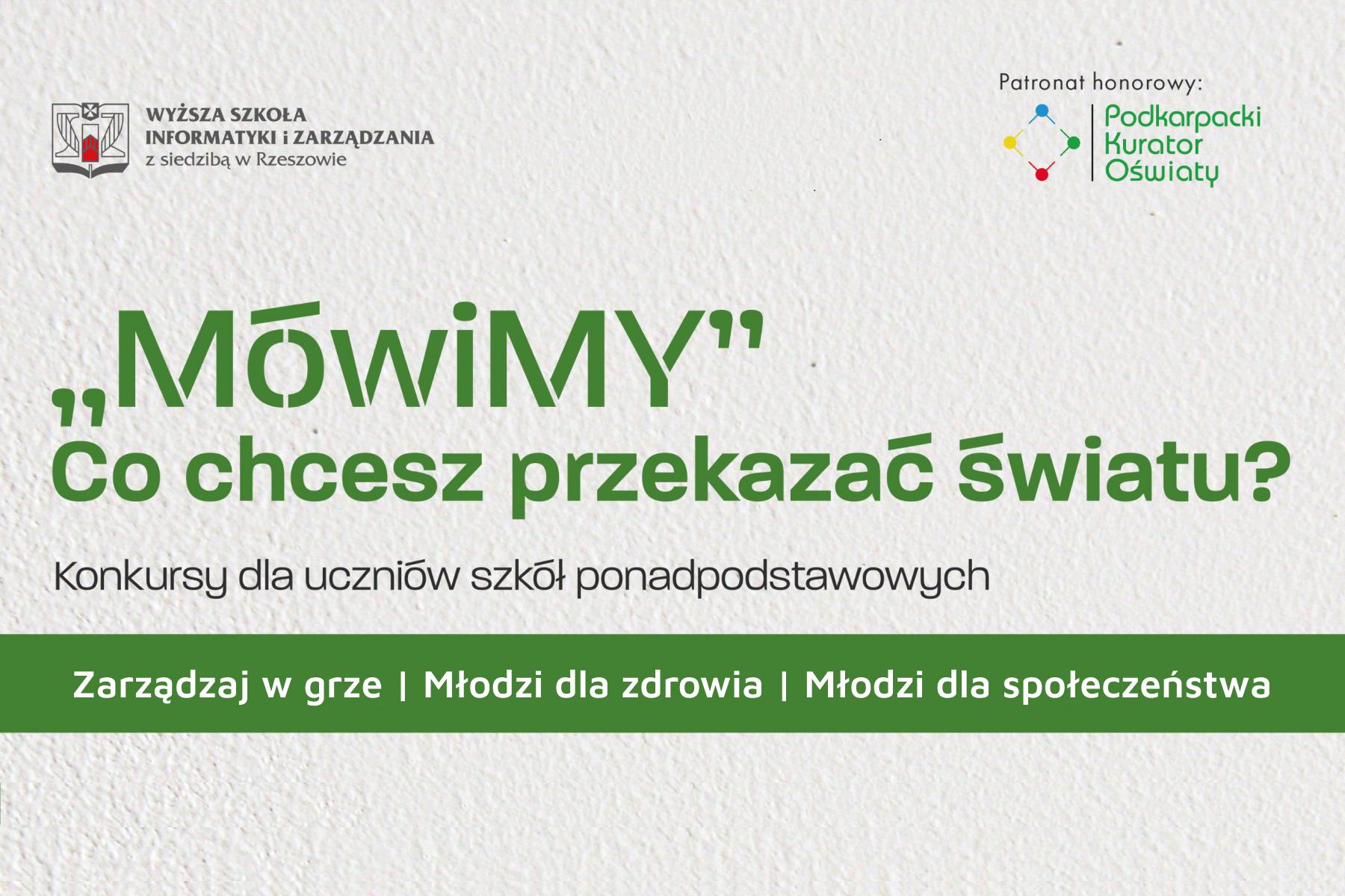 Wyższa Szkoła Informatyki i Zarządzania w Rzeszowie po raz kolejny oddaje głos młodym ludziom. Podkarpackie licea i technika przygotowują się do startu serii konkursów pod wspólnym hasłem „MówiMY. Co chcesz przekazać światu?”.
