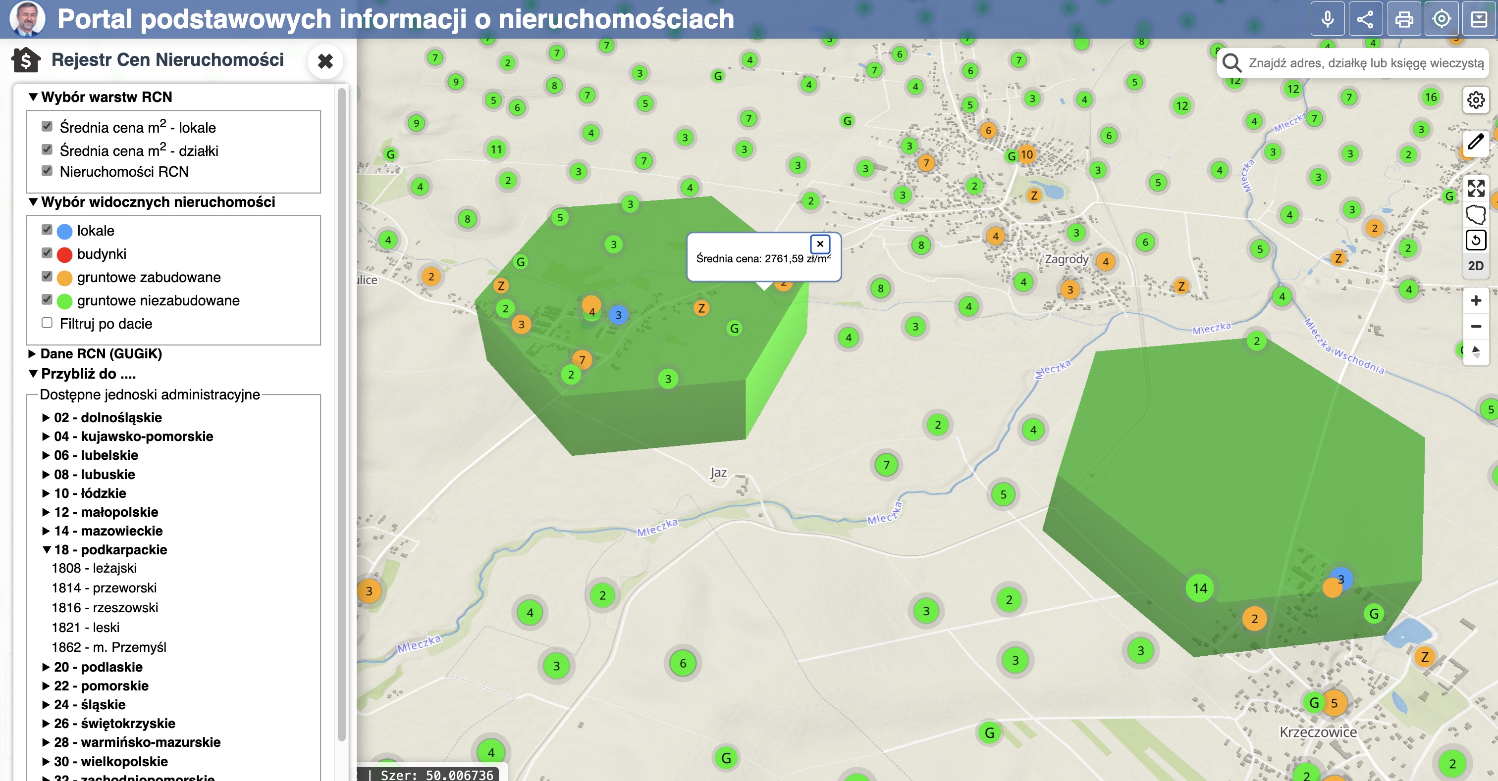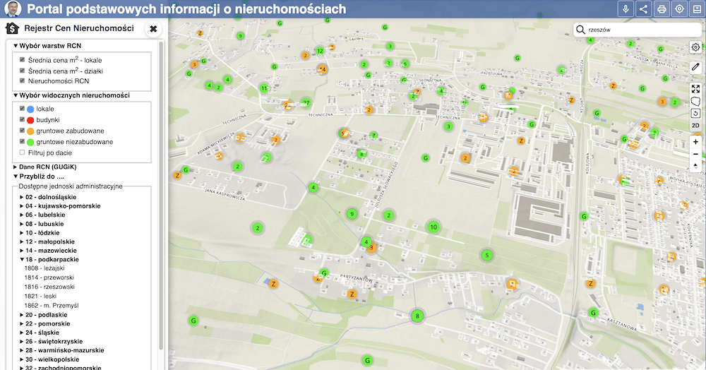 Po zmianie prawa prywatna inicjatywa zdołała już zintegrować dane dla części województwa podkarpackiego, udostępnione przez kilka powiatów. W serwisie mojgeoportal można znaleźć, np. informacje o transakcjach w powiatach rzeszowskim (ziemskim), leżajskim, przeworskim, leskim oraz w Przemyślu. Takich danych nie ma jeszcze w odniesieniu do Miasta Powiatu Rzeszów, ale udostępniła je wielokrotnie większa Warszawa.