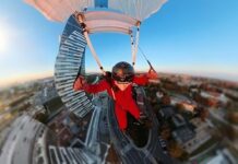 Ekstremalny wyczyn skoczka. Skoczył ze spadochronem z najwyższego wieżowca mieszkalnego w Polsce [FILM]