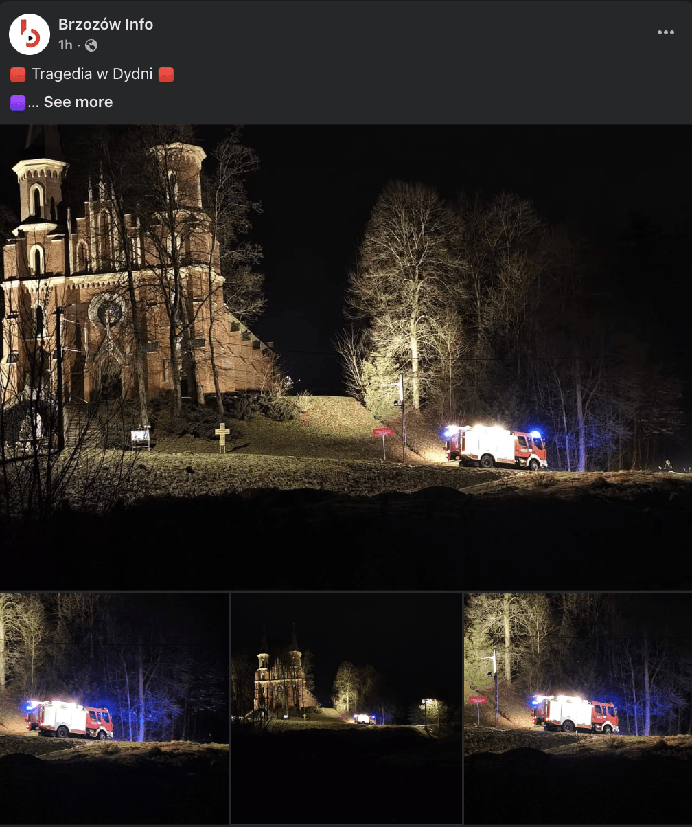 Zdarzenie miało miejsce na zboczu, w pobliżu oświetlonego kościoła parafialnego w Dydni. Teren akcji został zabezpieczony przez służby.