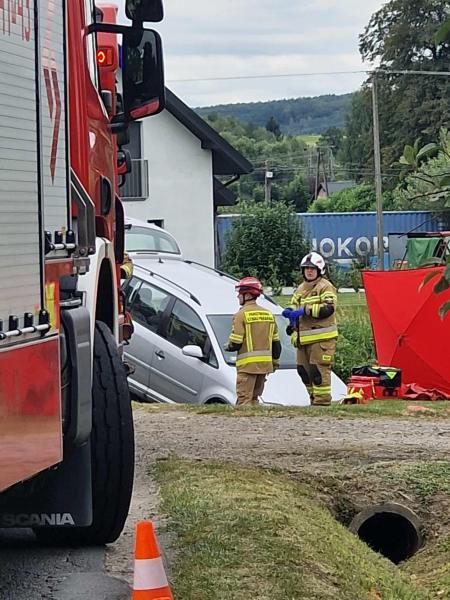 W wypadku, w którym zginął 80-letni kierowca volkswagena. Pasażerka pojazdu, po odniesionych obrażeniach, trafiła do szpitala. Na miejscu działały liczne służby, w tym Ochotnicza Straż Pożarna i Państwowa Straż Pożarna.