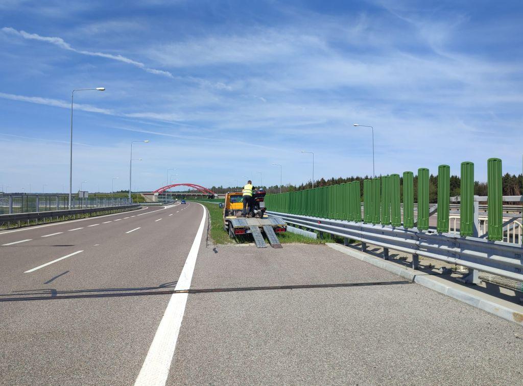Policjanci odholowali motocykl na policyjny parking. 54-latek stanie teraz przed sądem za dwa poważne wykroczenia: jazdę pod prąd autostradą oraz kierowanie pojazdem bez wymaganych uprawnień. Na szczęście nikomu nic się nie stało.