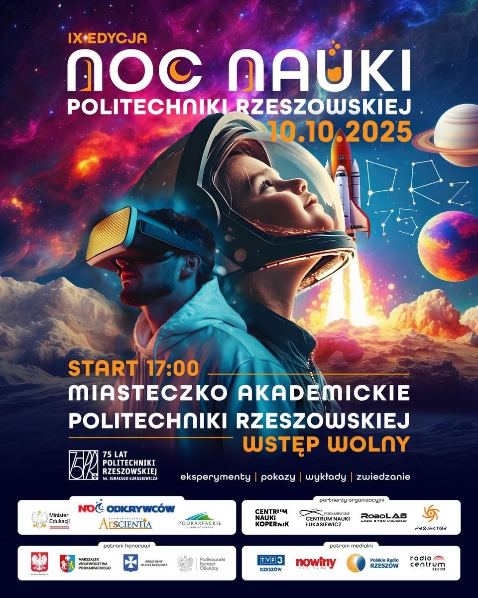 Już 10 października Politechnika Rzeszowska zaprasza wszystkich miłośników nauki na wyjątkowe wydarzenie – IX edycję Nocy Nauki. Uczelniane laboratoria, hale i korytarze zamienią się w fascynującą przestrzeń pełną doświadczeń, eksperymentów, robotów i naukowych niespodzianek.