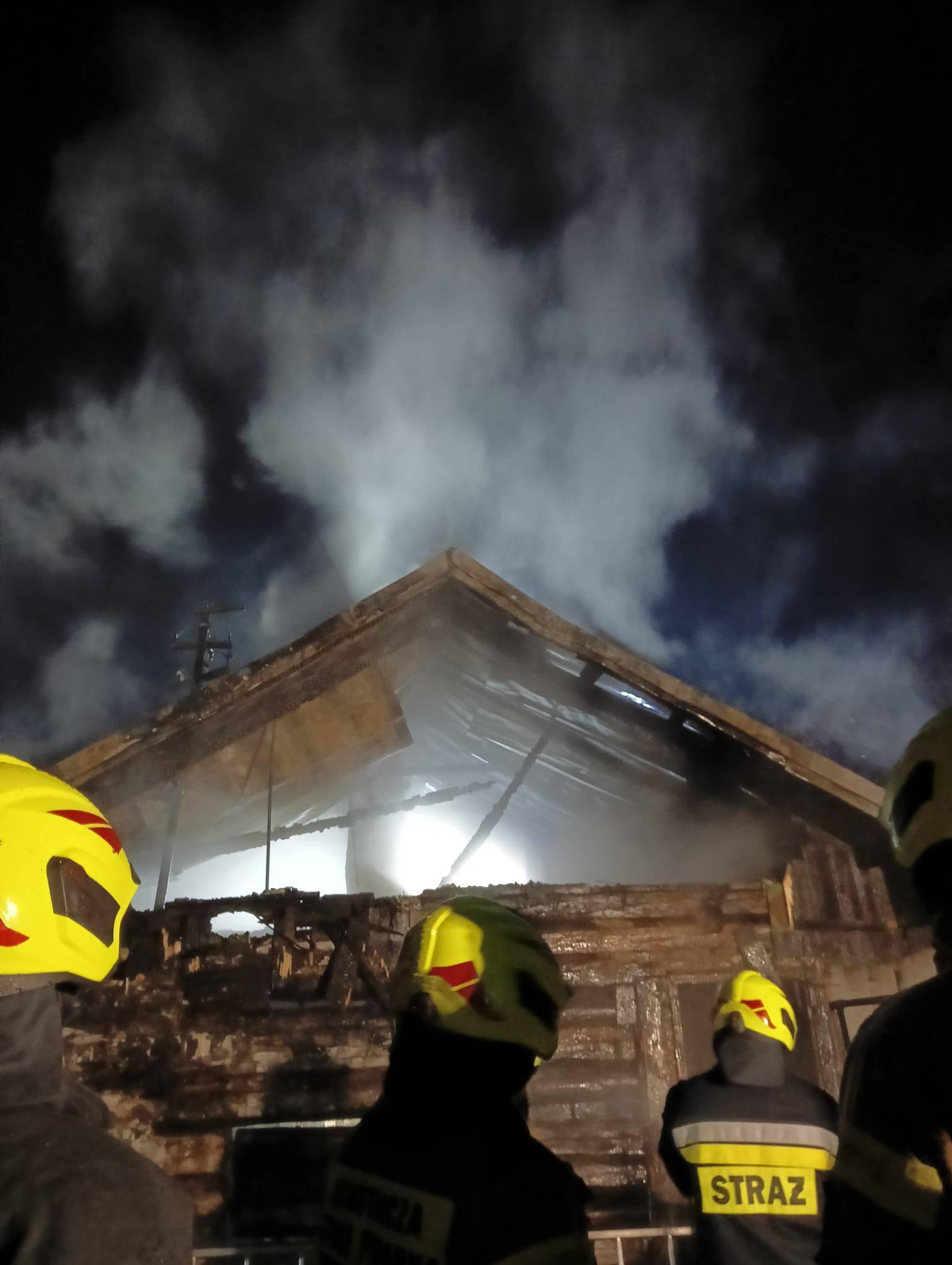 Strażacy natychmiast przystąpili do działań gaśniczych, jednocześnie przeszukując obiekt. Każda minuta miała znaczenie, bo konstrukcje drewniane sprzyjają szybkiemu rozwojowi ognia i grożą zawaleniem.
