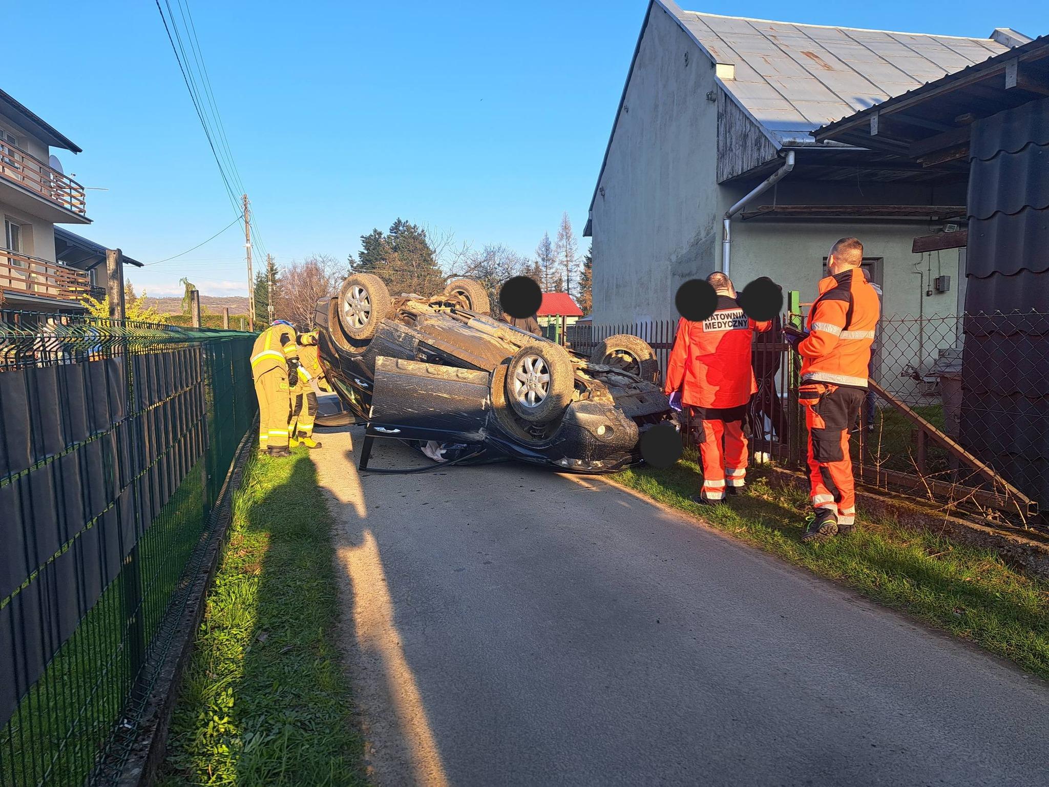 Siła uderzenia była na tyle duża, że ciężki SUV został podbity, co doprowadziło do jego wywrócenia. Samochód zatrzymał się kołami do góry, blokując drogę i uszkadzając część ogrodzenia. Na miejsce natychmiast zadysponowano służby ratunkowe: dwa zastępy JRG Krosno, OSP KSRG Dukla, pogotowie ratunkowe oraz policję.