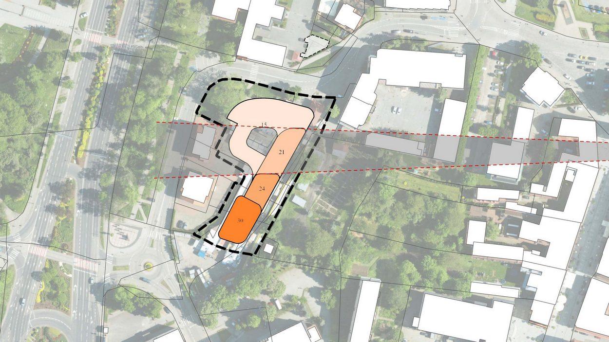 Zgodnie z wytycznymi radnego, od strony zabytkowej poczty budynek miałby zostać obniżony do około 15 metrów, by nie przytłaczać niskiej zabudowy Śródmieścia i nie psuć osi widokowych.
