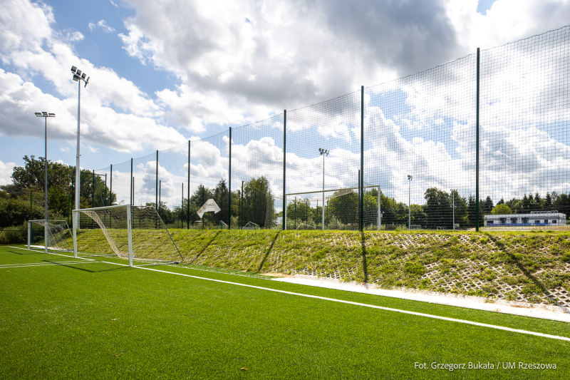 Zakres prac obejmuje też boisko treningowe o powierzchni ok. 2170 mkw. Na stadionie zamontowano dwa zestawy ławek dla zawodników, a na płycie boiska wykonano oświetlenie i monitoring.