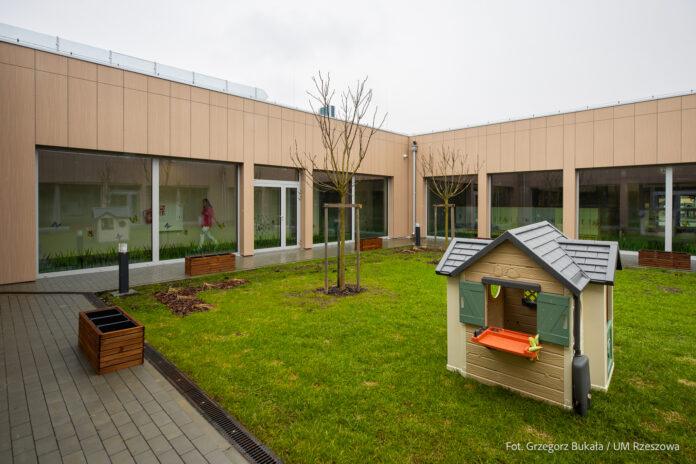 Obiekt zlokalizowany u zbiegu ulic Jachowicza i Kwiatkowskiego to parterowy budynek o powierzchni ponad 1,8 tys. m kw. Jego unikalną cechą jest wewnętrzny, zielony dziedziniec, który pozwala dzieciom na kontakt z naturą bez względu na pogodę. Projektanci postawili na komfort i ekologię – budynek jest w pełni klimatyzowany, wyposażony w oczyszczacze powietrza, instalację fotowoltaiczną oraz system monitoringu. Dla najmłodszych przygotowano sześć wielofunkcyjnych sal z multimedialnymi „magicznymi dywanami” oraz wydzielonymi strefami do zabawy, nauki i odpoczynku.