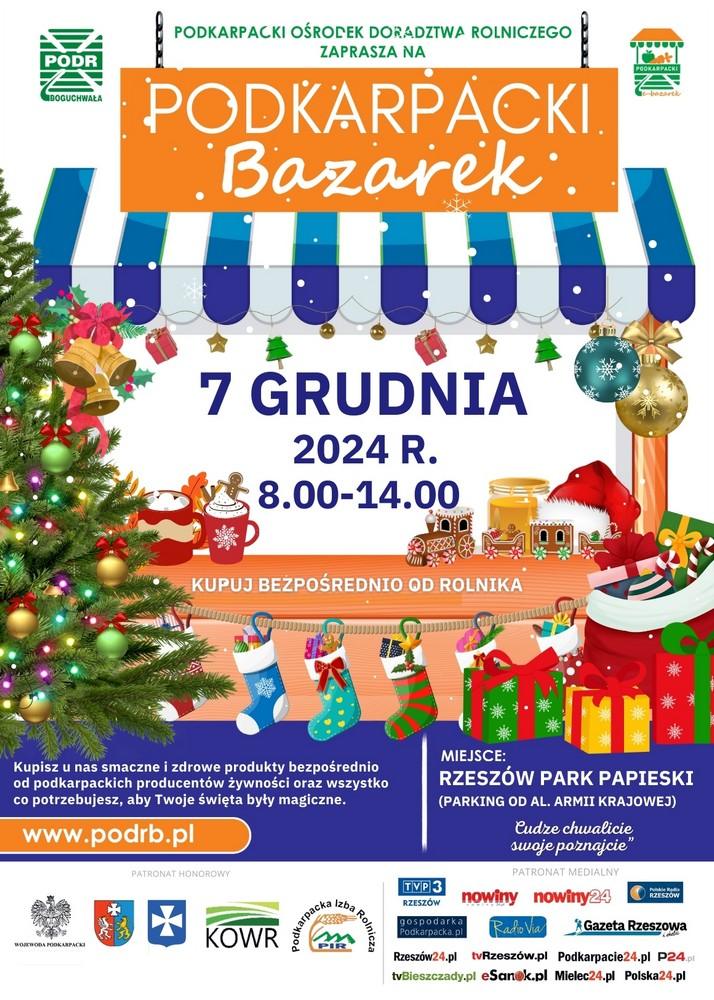 Ostatni już w tym roku Podkarpacki Bazarek odbędzie się w sobotę, 7 grudnia w Parku Papieskim (parking od al. Armii Krajowej). Wydarzenie rozpocznie się o godz. 8:00, a zamknięcie przewidziane jest na godz. 14:00.