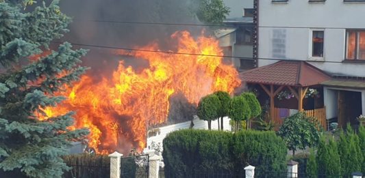 Spłonął garaż i samochód osobowy na osiedlu Miłocin w Rzeszowie [FOTO]
