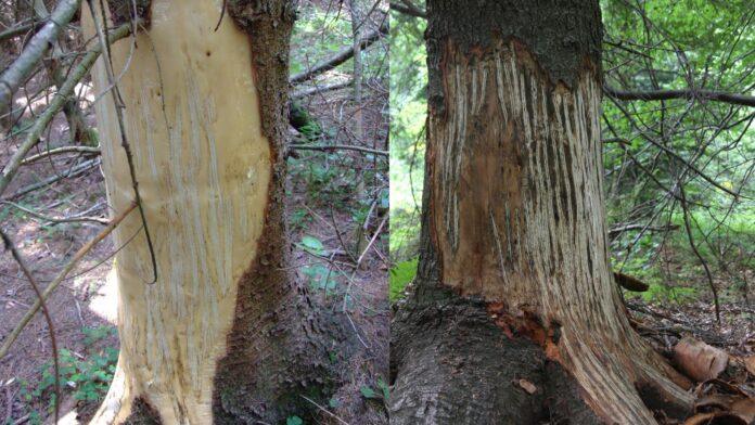 Niedźwiedzie w Bieszczadach wiosną zdzierają korę z dziesiątek jodeł. Pazurami rozdrapują pnie, a kłami zeskrobują miękkie łyko, żeby uzupełnić swoją dietę. W ten sposób jeden niedźwiedź potrafi zniszczyć nawet 120 drzew.
