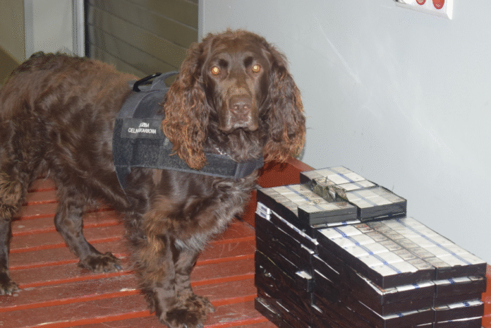 Funkcjonariusze Oddziału Celnego w Budomierzu skierowali do szczegółowej kontroli autokar, który wjeżdżał do Polski z Ukrainy. Podczas rewizji wykryli, że w skrytce za kołem zapasowym znajdują się papierosy bez polskich znaków akcyzy. Główną rolę odegrał w tym służbowy pies – Jagger.