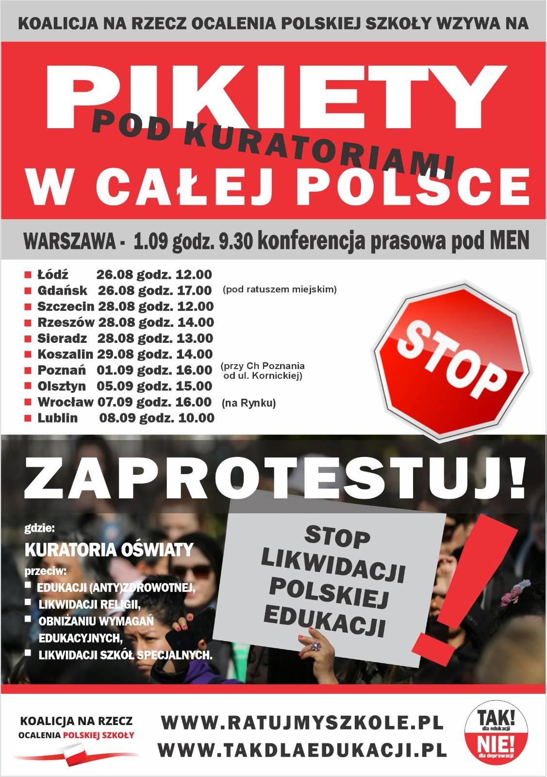 W czwartek, 28 sierpnia, o godzinie 14:00 pod Kuratorium Oświaty w Rzeszowie odbędzie się pikieta, zorganizowana przez „Koalicję na rzecz Ocalenia Polskiej Szkoły”. To sprzeciw wobec nowego przedmiotu „Edukacja zdrowotna”, który startuje od 1 września br. i ma zastąpić „Wychowanie do życia w rodzinie”.