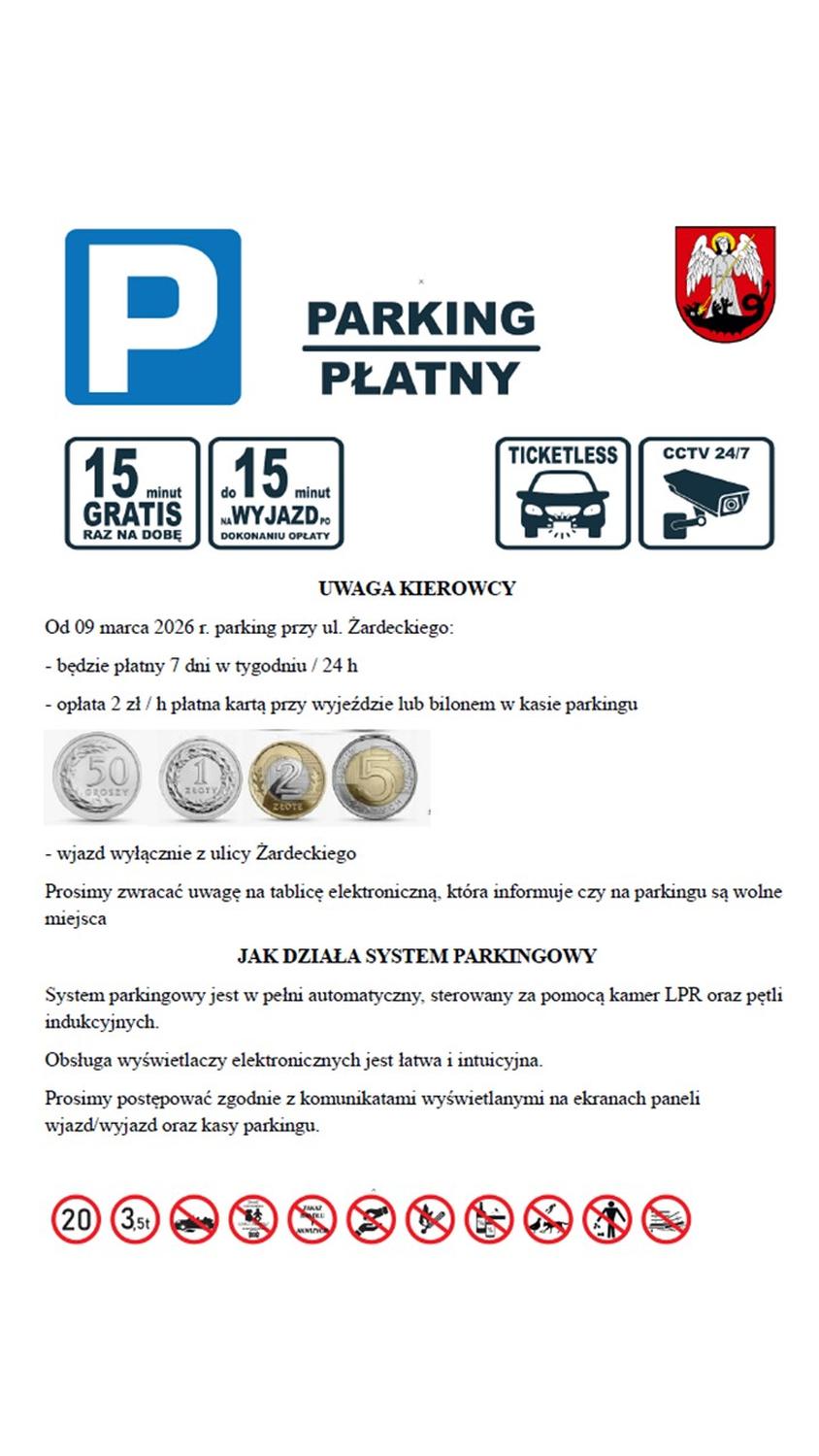 Miejski Zarząd Budynków w Łańcucie ogłosił, że trwają prace końcowe związane z budową systemu automatycznego poboru opłat na parkingu przy ul. Żardeckiego, który od 9 marca będzie parkingiem płatnym. W dniach 5 i 6 marca firma Car Flow kończyła montaż infrastruktury, a pracownicy MZB kończyli montaż oznakowania.