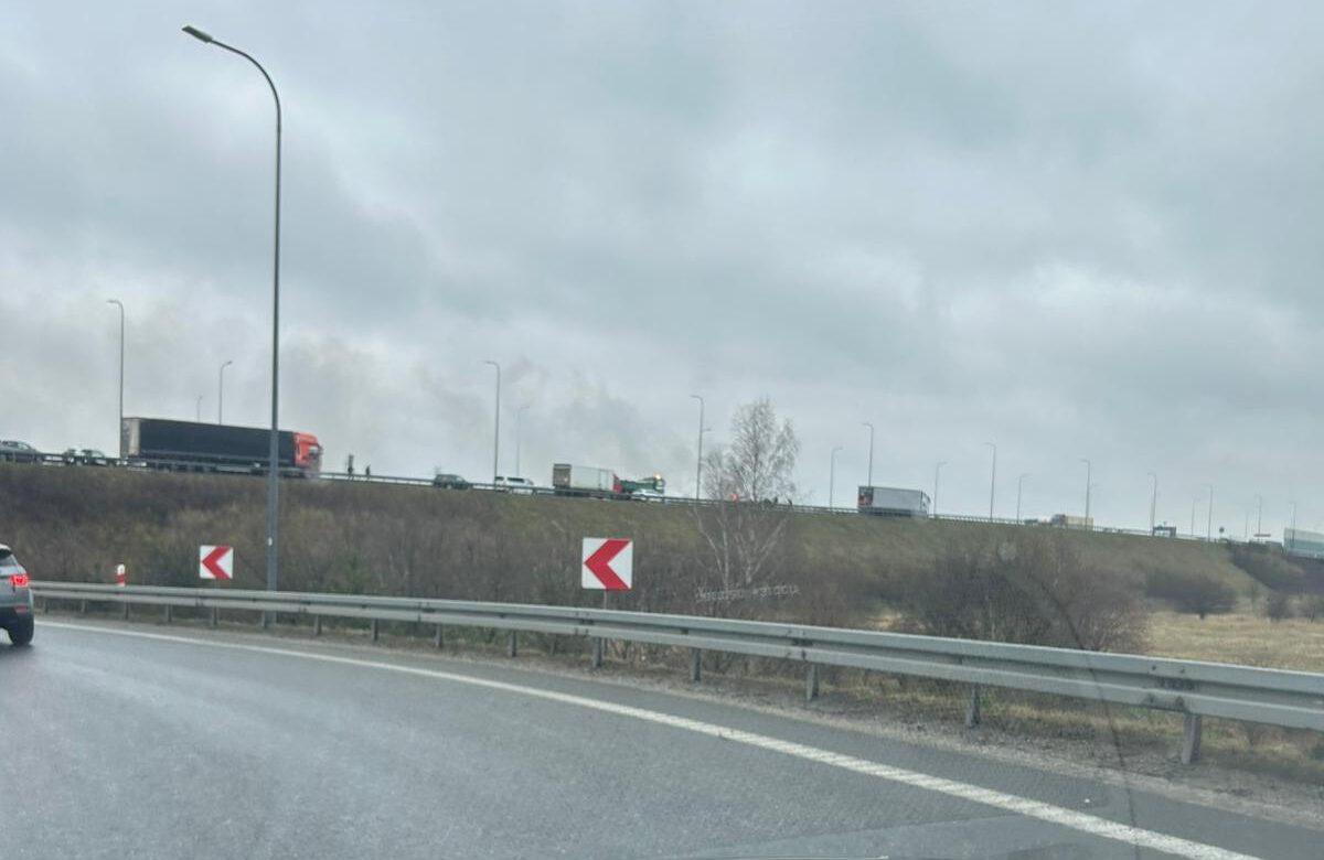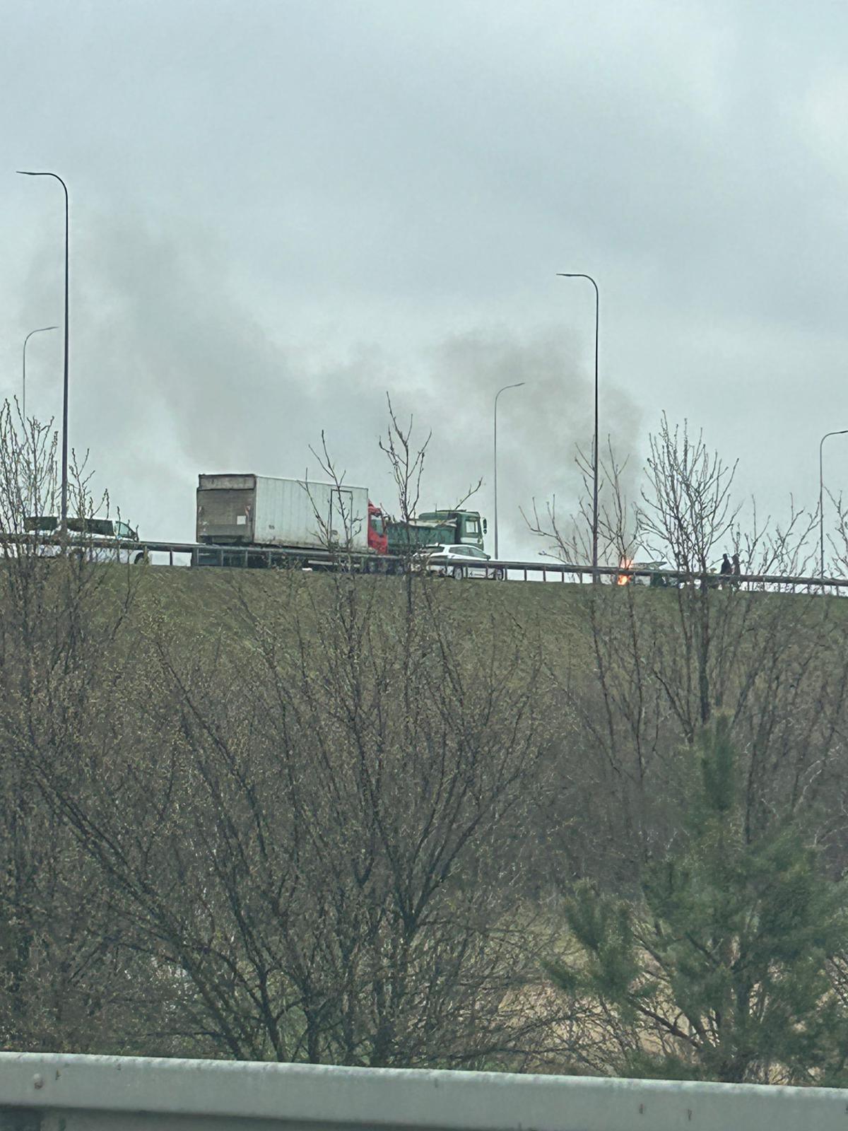 Płonące auto na S19. Paraliż na węźle Rzeszów Wschód