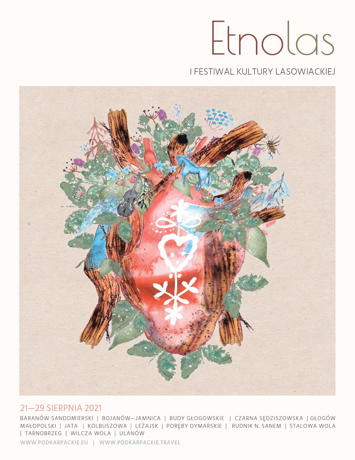 Blisko 50 wydarzeń, ponad 15 lokalizacji i 9 dni, podczas których tematem przewodnim będzie kultura lasowiacka. Już 21 sierpnia br. rozpocznie się nowy FESTIWAL na imprezowej mapie Podkarpacia. Marszałek Województwa Podkarpackiego i Podkarpacka Regionalna Organizacja Turystyczna serdecznie zapraszają na podkarpacki Festiwal spod znaku serca! Wstęp na wydarzenia i imprezy festiwalowe jest nieodpłatny.