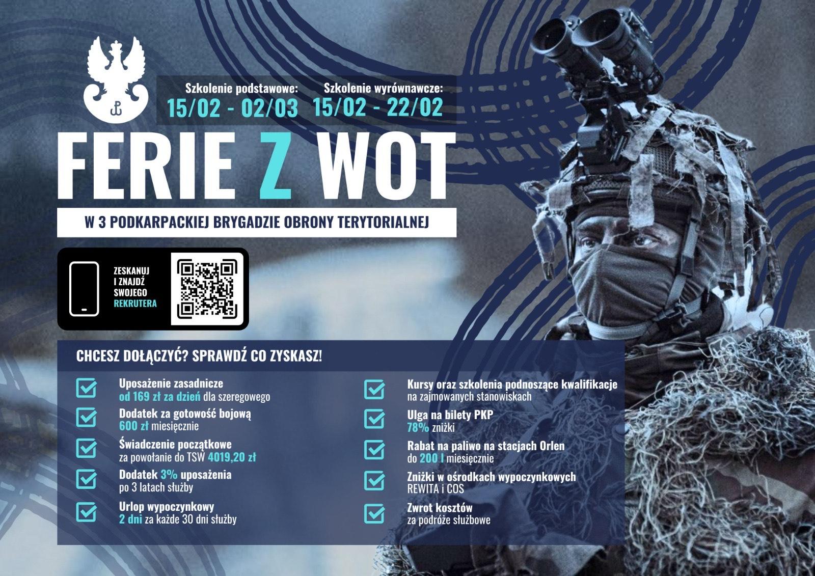 W ramach rozpoczętych szkoleń w 2025 roku, 3 Podkarpacka Brygada Obrony Terytorialnej zaprasza nowych ochotników oraz rezerwistów do wzięcia udziału w projekcie „Ferie z WOT”. Szkolenie rozpocznie się 15 lutego 2025 roku.
