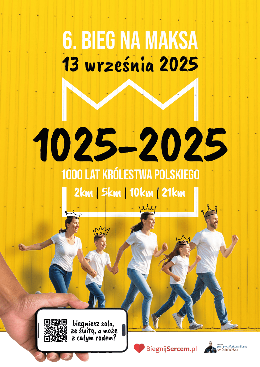 13 września w Sanoku odbędzie się VI Rodzinna Pielgrzymka Biegowa Św. Maksymiliana – “Bieg na Maksa”. Start o 10:00. To jedna z najpopularniejszych imprez biegowych w regionie.