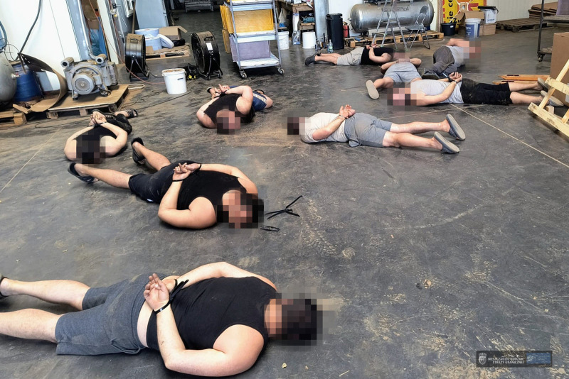 Zatrzymano 15 osób, w tym dziewięciu obywateli Armenii, którzy obsługiwali linię produkcyjną. Nielegalne hale działały m.in. jako sortownie owoców.