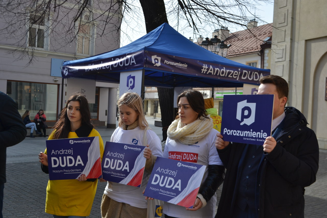 W samo południe na placu Farnym kilku działaczy Porozumienia ustawiło namiot pod którym mieszkańcy mogli składać podpisy pod kandydaturą Andrzeja Dudy (PiS) w wyborach prezydenckich, które odbędą się 10 maja.