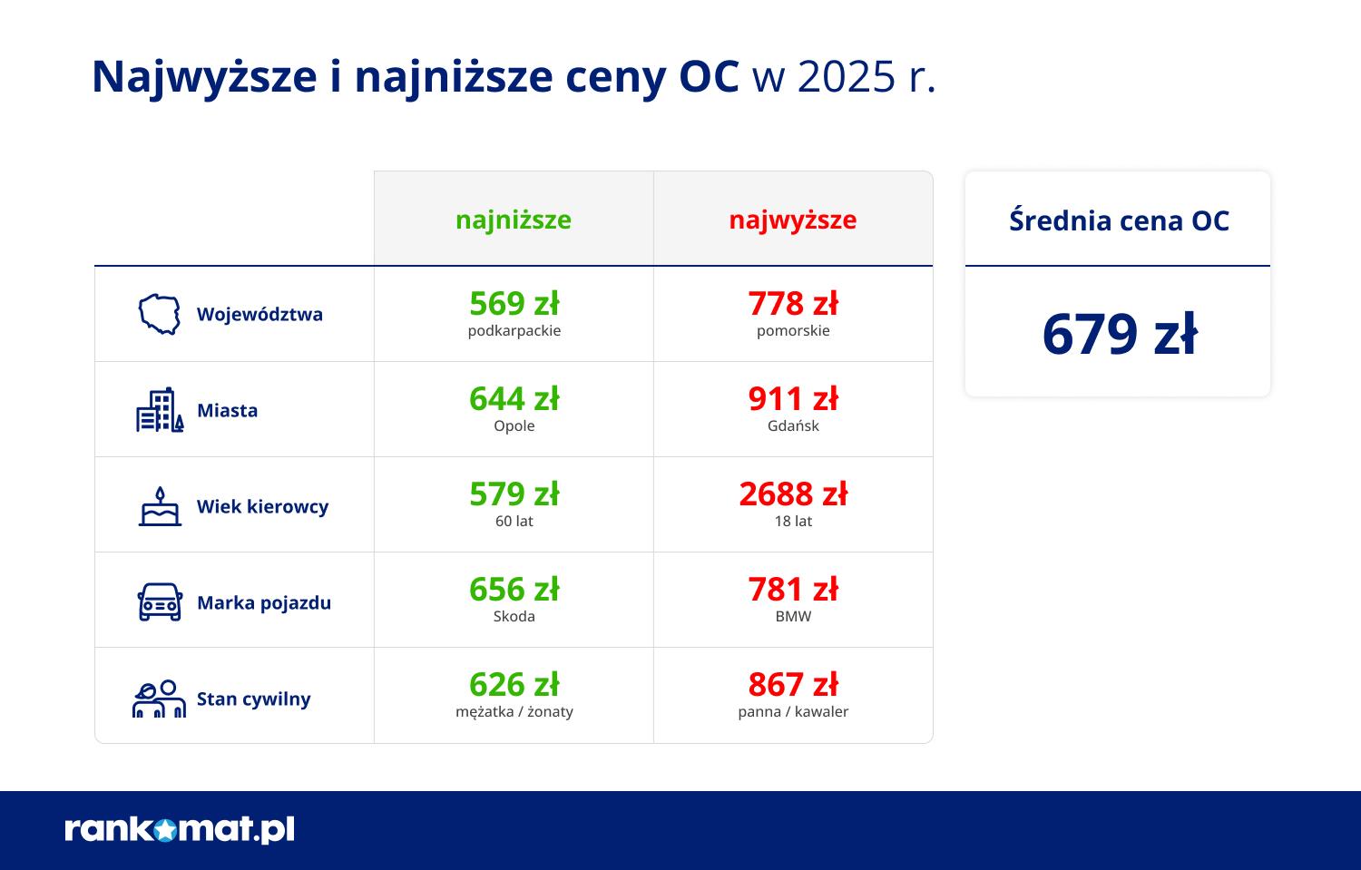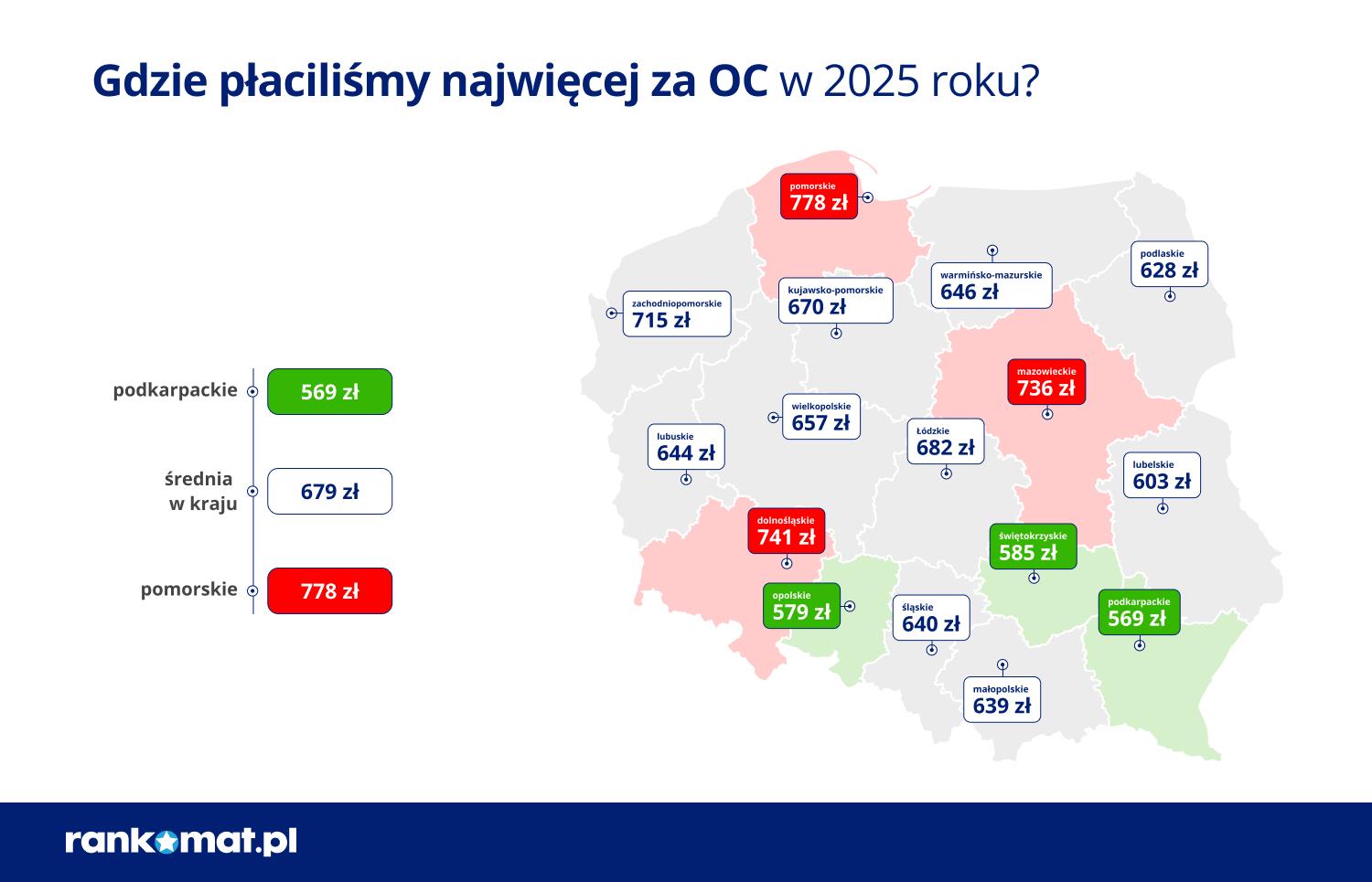 Wprawdzie cieszymy się z pozycji lidera niskich cen, warto dodać łyżkę dziegciu do tej beczki miodu. Jest tanio, ale było taniej. W porównaniu do roku 2024, mieszkańcy Podkarpacia odczuli podwyżkę średnio o 5,4% (wzrost z 540 zł do 569 zł).
