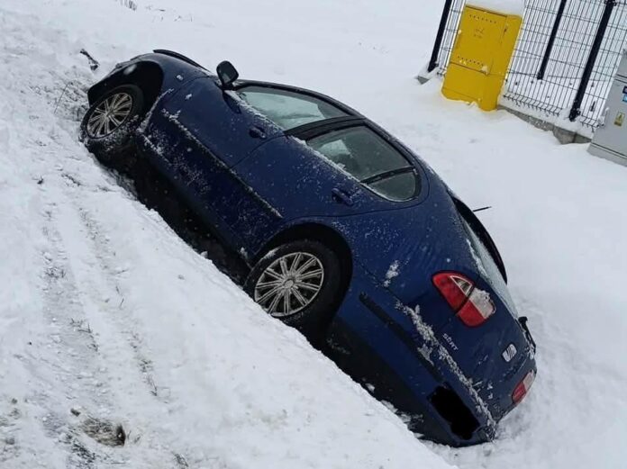 Groźna kolizja. Osobówka zaparkowała z impetem w głębokim rowie [ZDJĘCIA]