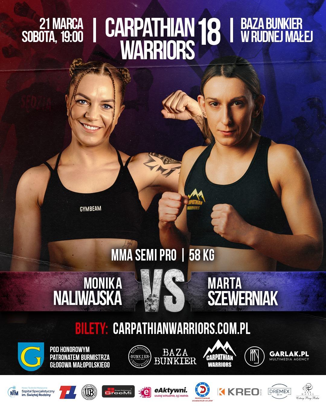 - Monika Naliwajska vs Marta Szewerniak – MMA Semi Pro / 58 kg (walka kobiet)