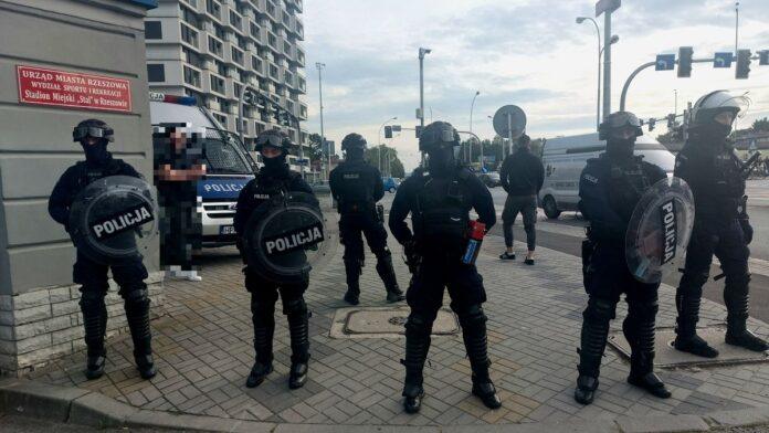 Na czwartkowy mecz piłki nożnej o Puchar Polski między Resovią a Lechem Poznań przyszło ponad 3600 kibiców. Spotkanie traktowano jako mecz podwyższonego ryzyka, dlatego kryminalni i policjanci z prewencji pilnowali porządku nie tylko wokół stadionu, ale też w całym mieście.