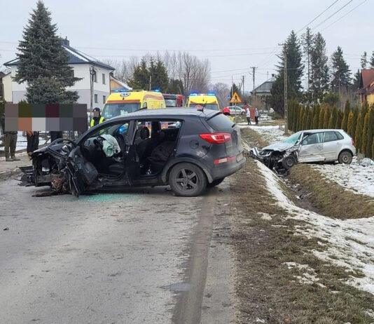 Poważny wypadek na DW984. Cztery osoby ranne po zderzeniu opla z dostawczakiem [ZDJĘCIA]