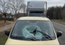 Kierowca iveco, został ukarany mandatem i punktami karnymi za złe przygotowanie samochodu do jazdy. Bryła lodu, która spadła z dachu jego samochodu uderzyła w...