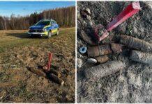 Pociski artyleryjskie z II wojny światowej w Błażowej Dolnej. Jeden z nich był rozszczelniony