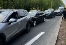 Łańcuchowa kolizja na al. Witosa w Rzeszowie. Cztery auta zderzyły się w godzinach szczytu