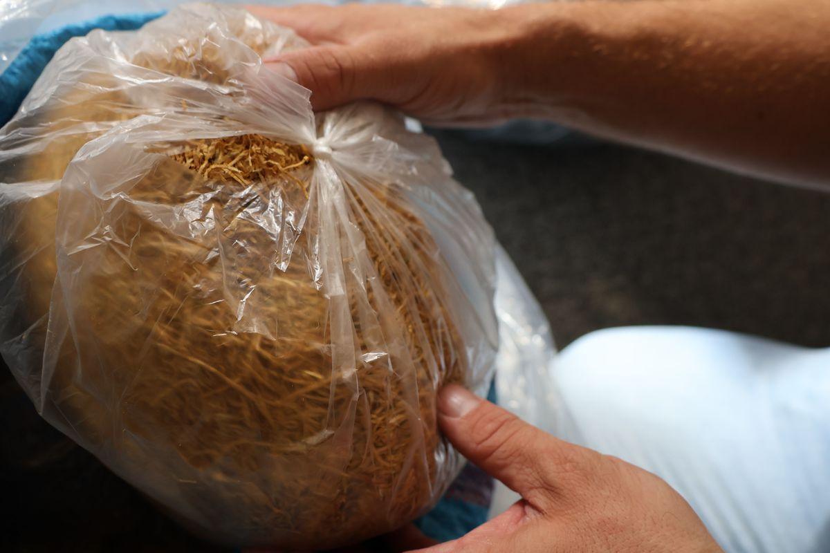 Tam funkcjonariusze odkryli kolejne worki i pudło z nielegalnym towarem. W sumie zabezpieczyli blisko 55 kg krajanki tytoniowej. Wszystkie wyroby nie miały wymaganych znaków skarbowych.