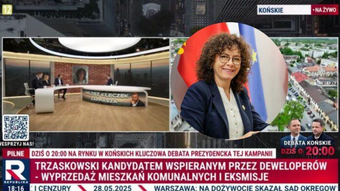 Prowadzący Miłosz Kłeczek stwierdził, że Warszawa rządzona przez Rafała Trzaskowskiego „pozbyła się 70 tys. mieszkań komunalnych”. Burkiewicz odpowiedziała, że nie widziała tych danych, ale przypomniała o sprawie mieszkania komunalnego, które wykupił Karol Nawrocki. Tłumaczyła, że mieszkania były sprzedawane użytkownikom, którzy teraz są ich właścicielami.