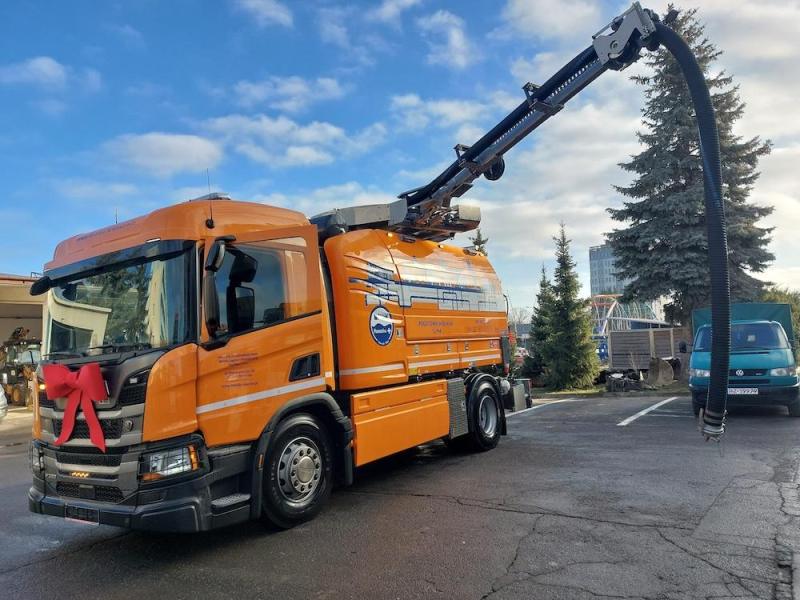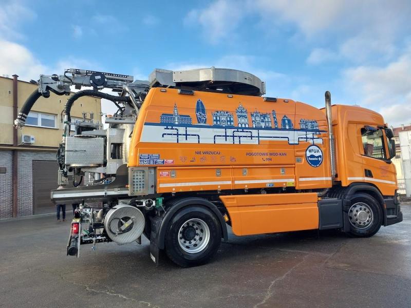 – Pojazd jest wielofunkcyjny i ma bardzo szerokie zastosowanie, to m.in. czyszczenie sieci kanalizacyjnej, obsługa przepompowni ścieków poprzez wypompowywanie ścieków i tłuszczów, ale także czyszczenie zbiorników, transport osadów do oczyszczalni oraz bieżące utrzymanie sieci kanalizacyjnej i deszczowej – wyliczał Zeńko.