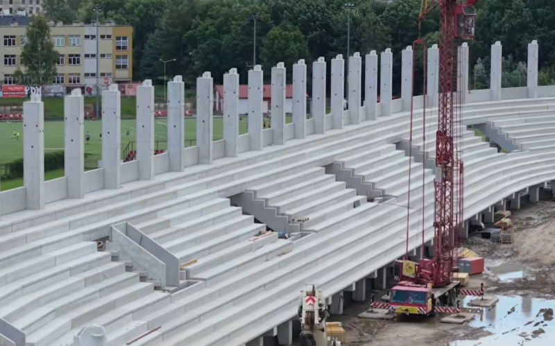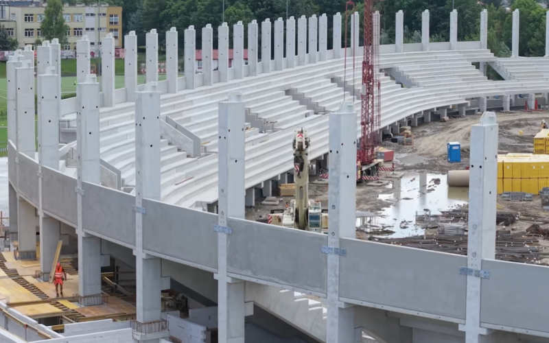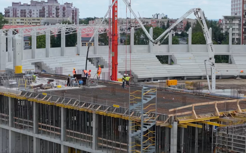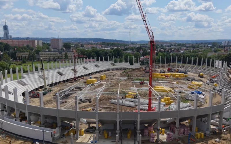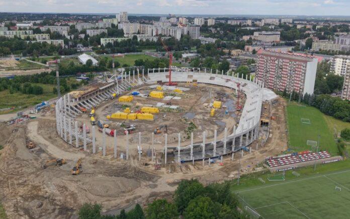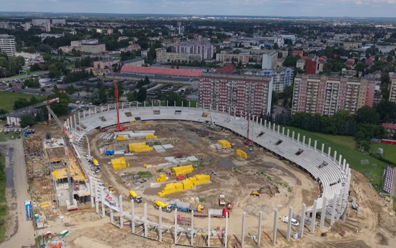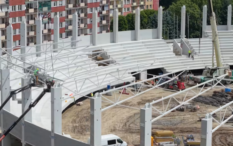 Sportowa arena rośnie i w połowie sierpnia można już tam zobaczyć coraz więcej elementów konstrukcyjnych pod kątem powstającej areny.