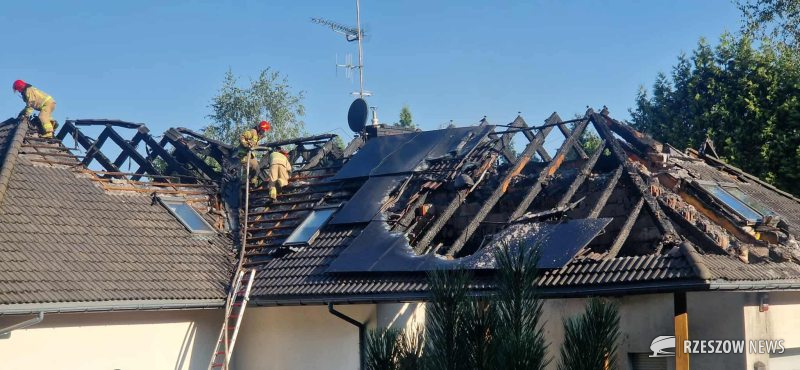 Strażacy aż czterokrotnie gasili pożar dachu murowanego domu z instalacją fotowoltaiczną w Głogowie Małopolskim. Pierwszy wyjazd miał miejsce we wtorek 5 sierpnia o godz. 3:00, ostatni dzisiaj rano rano. Nikomu nic się nie stało.