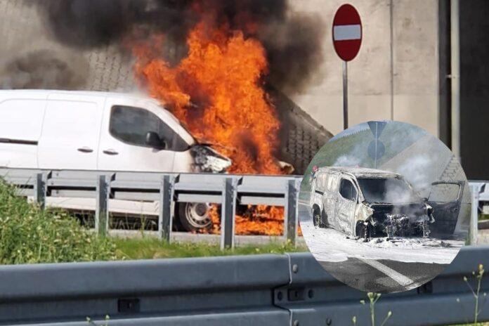 Późnym czwartkowym popołudniem w Racławówce pod Rzeszowem doszło do pożaru samochodu dostawczego. Płonący pojazd przez pewien czas zablokował ruch w okolicach ronda przy trasie S19.