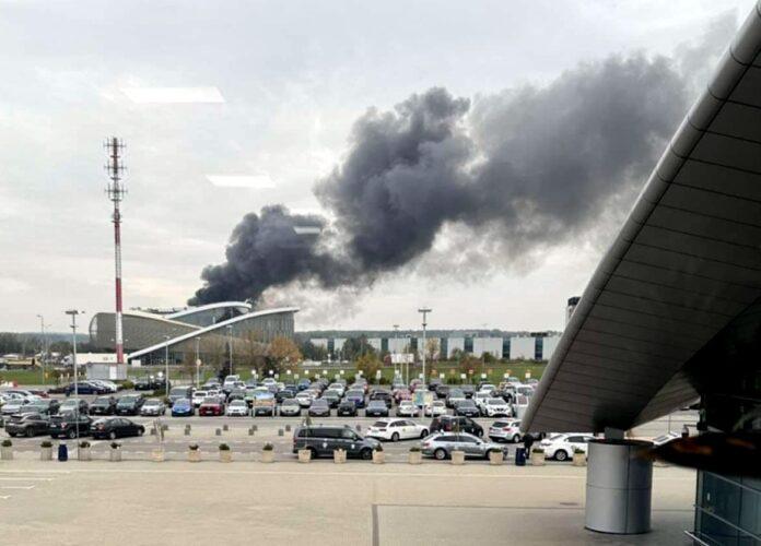 Siedemnaście zastępów straży pożarnej gasi pożar namiotów magazynowych w Tajęcinie obok Jasionki. – Pracownicy ewakuowali się przed przyjazdem straży pożarnej, dwie osoby uskarżają się na podtrucie dymem – informuje bryg. Marcin Betleja z PSP Rzeszów.