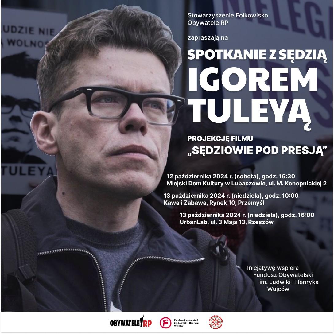 Cykl spotkań z sędzią Tuleyą rozpocznie się w sobotę, 12 października, w Lubaczowie. Następnego dnia sędzia odwiedzi Przemyśl i Rzeszów. Każde ze spotkań będzie okazją do rozmowy o kluczowych kwestiach dotyczących praworządności w Polsce.