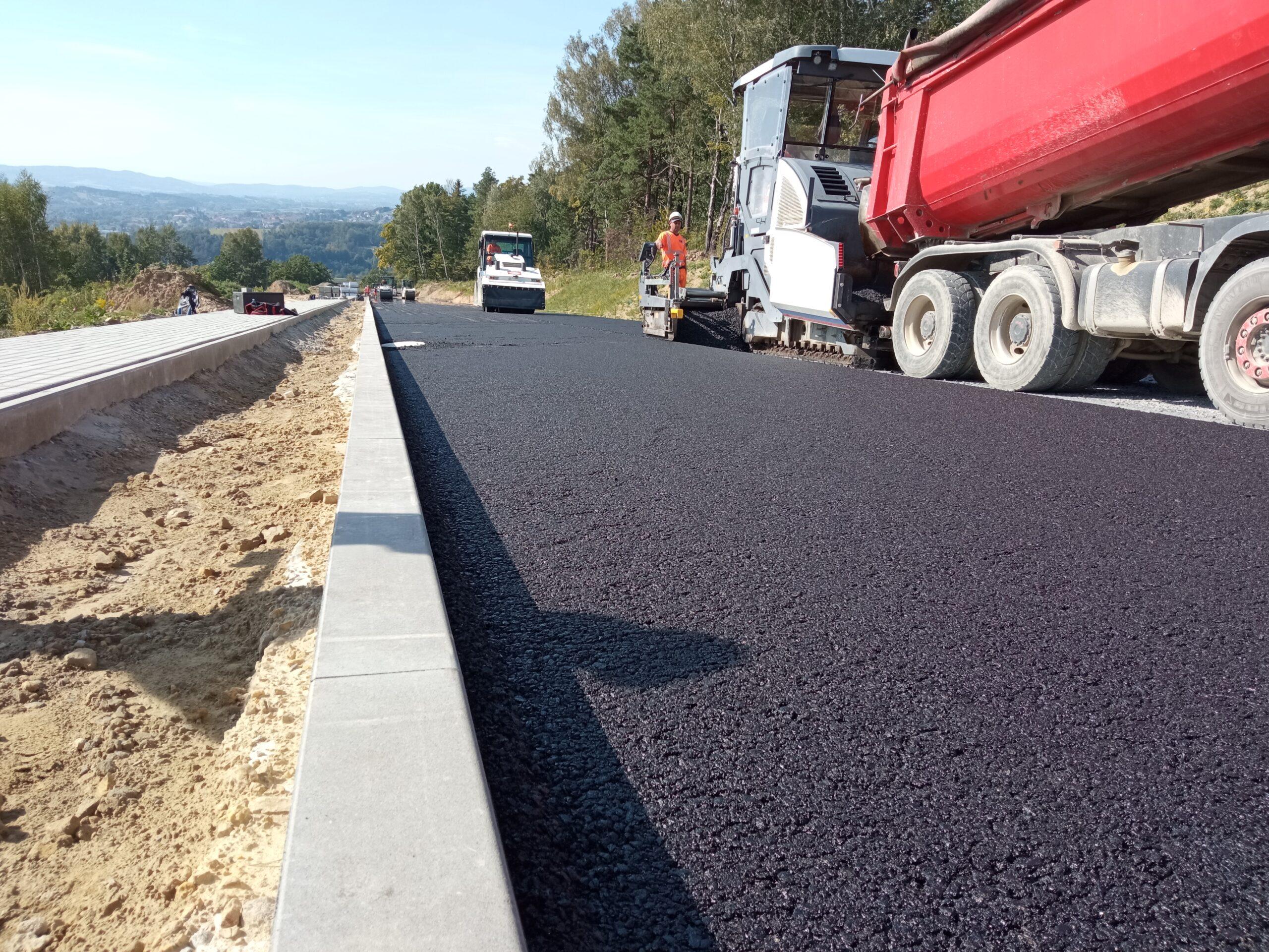 Na węźle Strzyżów – Żarnowa, na drodze powiatowej DP1931R, zakończono układanie pierwszego fragmentu podbudowy z betonu asfaltowego. Do wykonania tego odcinka zużyto aż 615 ton masy bitumicznej. W momencie układania temperatura masy osiągnęła 160 stopni Celsjusza.