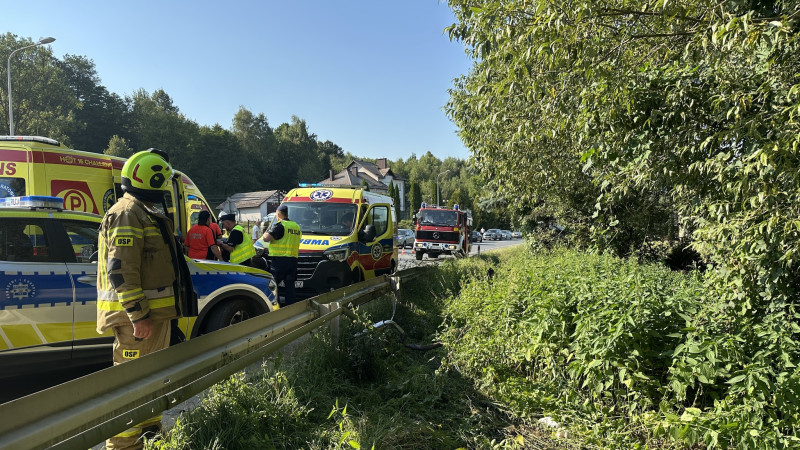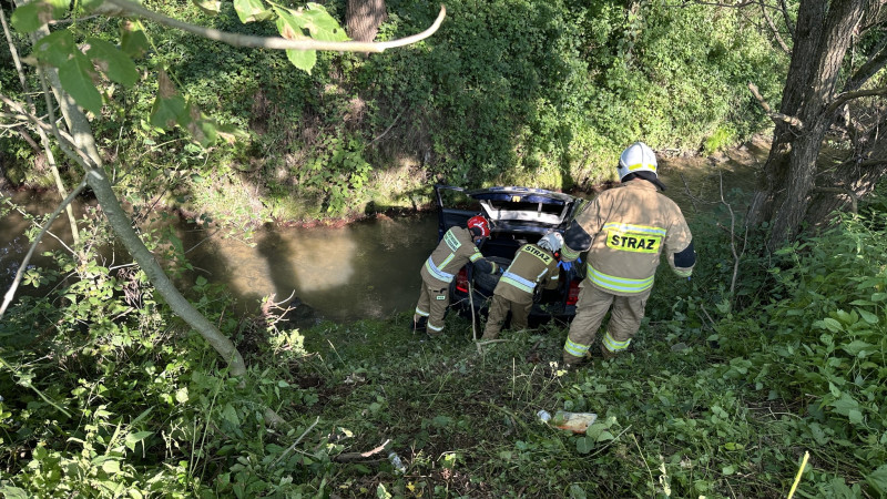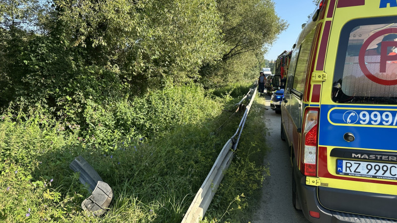 W Małówce na drodze krajowej nr 19 samochód osobowy wypadł z drogi, przebił bariery i wpadł do potoku. Na miejsce przyjechały służby ratunkowe – policja, OSP z Połomii i Niebylca, straż pożarna i zespół pogotowia ratunkowego.
