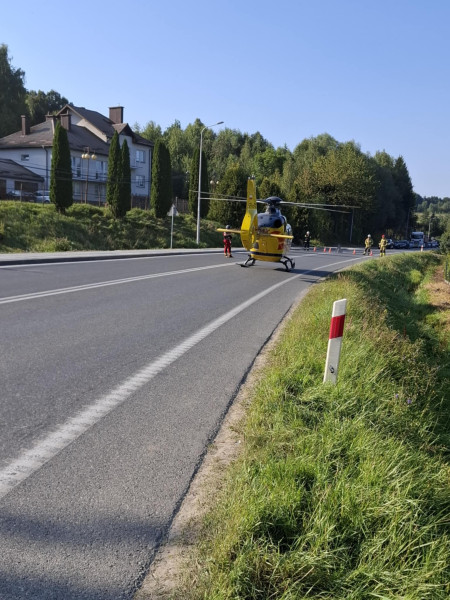 – Działania polegały na zabezpieczeniu miejsca zdarzenia, pomocy w przetransportowaniu osoby poszkodowanej do karetki oraz przygotowaniu lądowiska dla LPR – czytamy na profilu Facebooku OSP Połomia. LPR przetransportowało mężczyznę do szpitala.